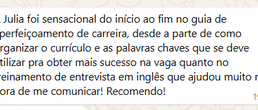 Apoio online e presencial direcionado ao desenvolvimento profissional em cenários nacionais e internacionais. A consultoria inclui treinamento de inglês para entrevistas, preparação para processos seletivos, revisão de currículo e otimização de LinkedIn, além de estratégias para posicionamento e crescimento de carreira.